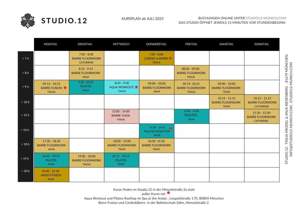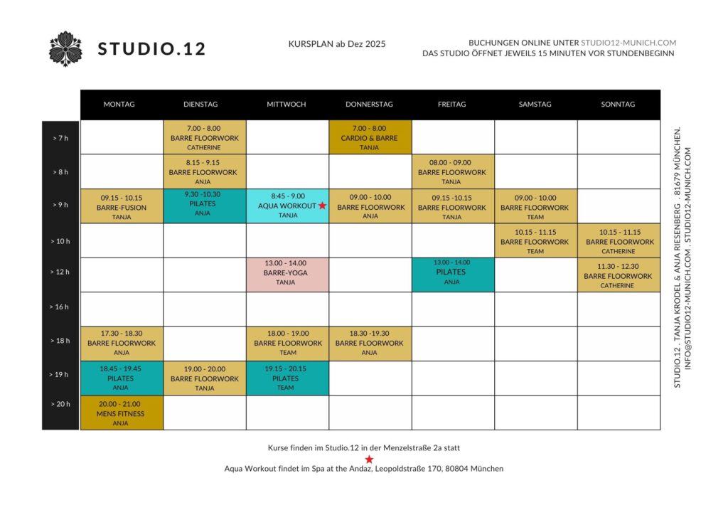 Unsere Kurse werden von unserem Team aus hochqualifizierten Trainern und nach unseren Studio.12 Kurskonzept Standards gehalten. Sie bringen nicht nur ihre umfangreiche Expertise sondern zusätzlich noch ihre individuelle Persönlichkeit in jedem Kurs mit ein.